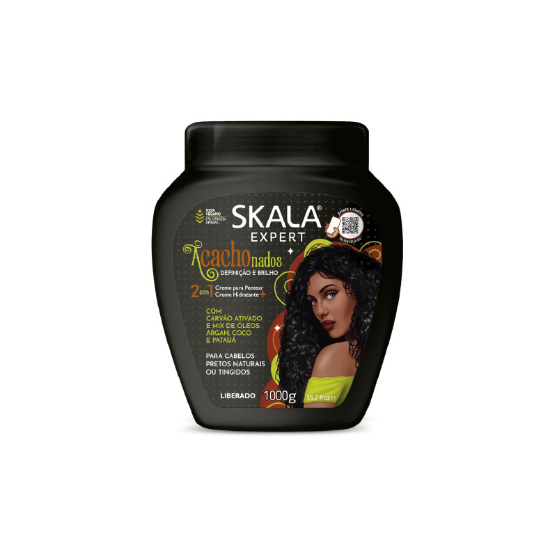 Pensando en los rizos negros naturales o teñidos, Dona Skala ha desarrollado la línea Acachonados. Este shampoo está indicado para el cabello rizado y su fórmula nutre sin pesar, dejando los cabellos definidos y brillantes.